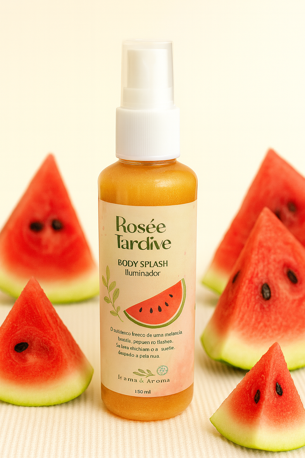 O Body Splash Iluminador de Melancia – 140ml da Trama & Aroma é mais que uma fragrância: é uma celebração sensorial da leveza, da luz e do autocuidado diário. Com uma fórmula leve e hidratante, ele perfuma suavemente com notas frescas e levemente doces de melancia madura, enquanto micropartículas cintilantes iluminam a pele com sutileza.