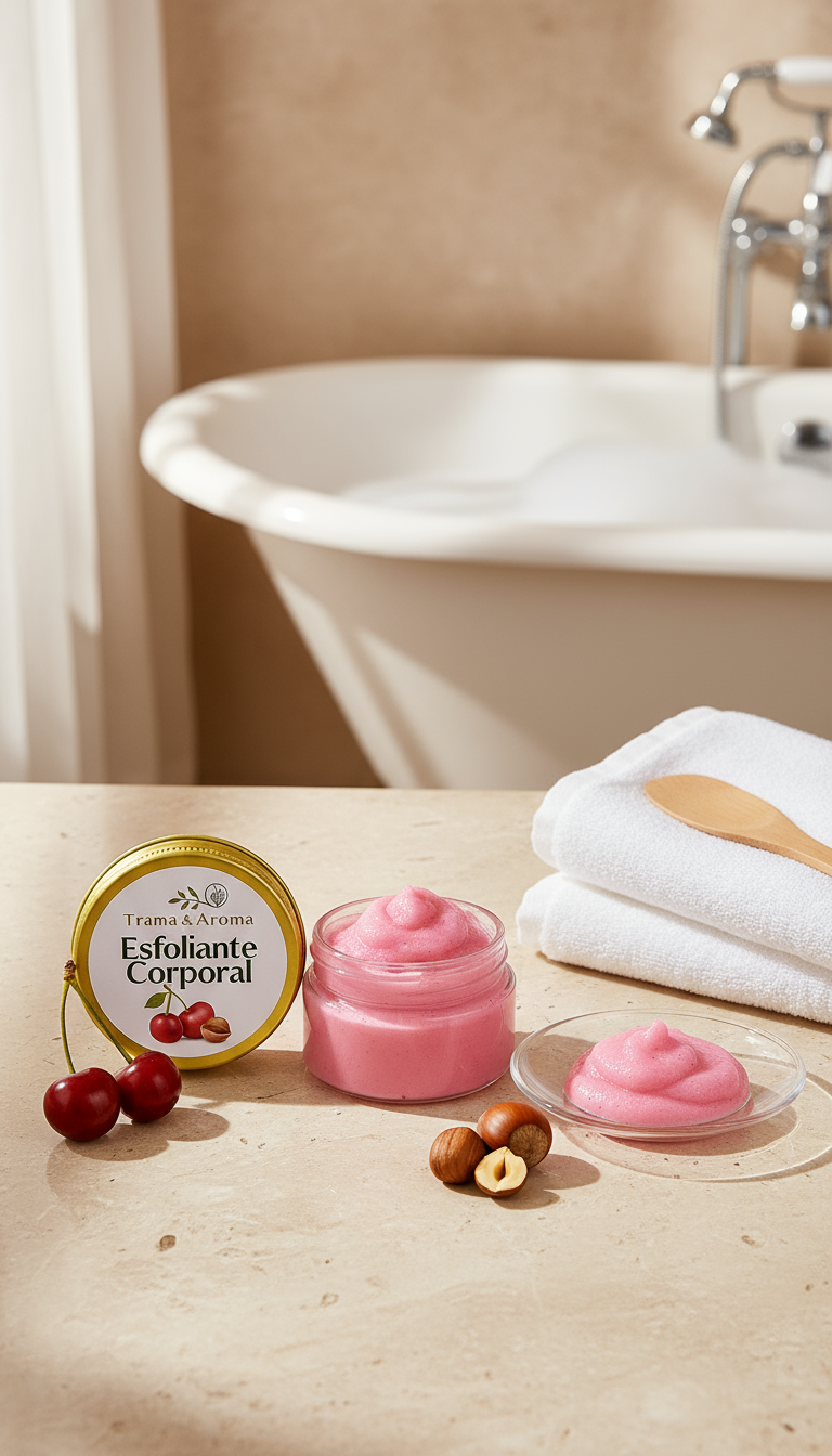 O Esfoliante Corporal de Cereja com Avelã – 100g é a versão prática e encantadora desse cuidado. Com grânulos naturais, proporciona uma esfoliação suave e eficaz, removendo impurezas e preparando a pele para hidratação.