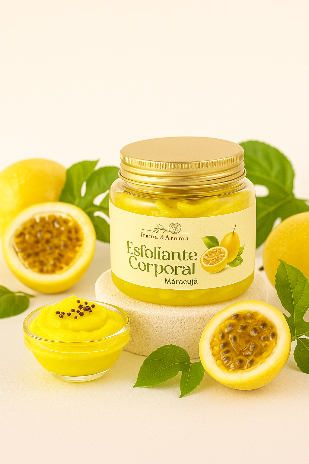 O Esfoliante Corporal de Maracujá – 200g da Trama & Aroma foi desenvolvido para proporcionar uma esfoliação suave e eficaz, eliminando células mortas, ajudando na renovação da pele e promovendo uma sensação de frescor imediata.