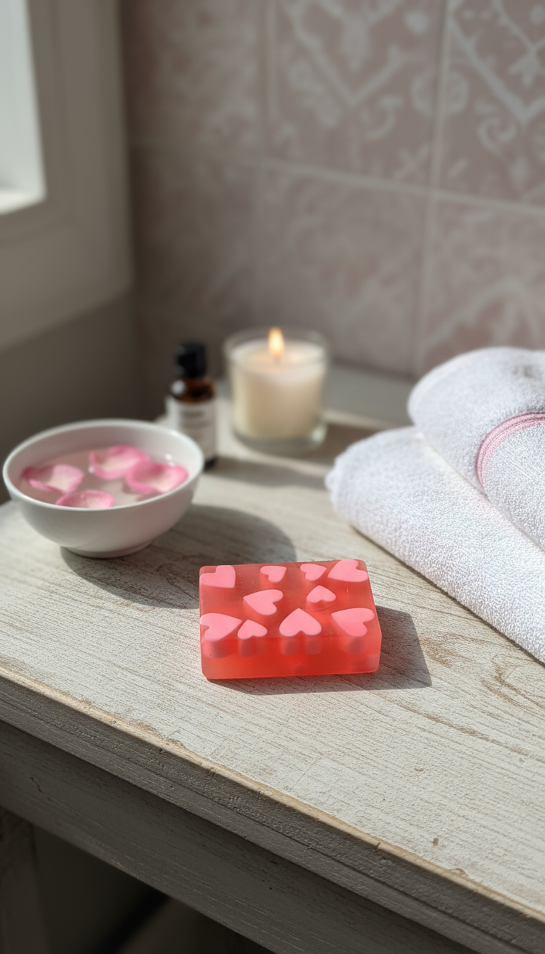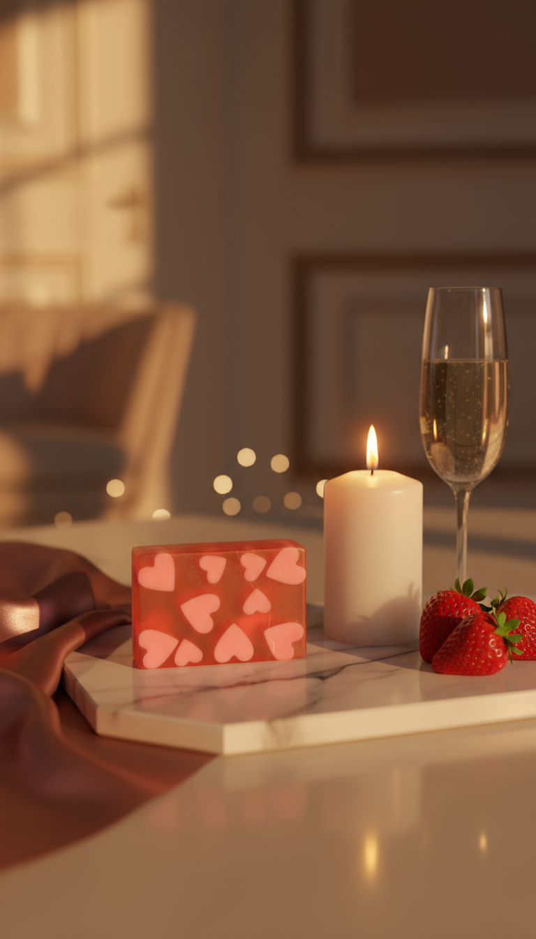 Sabonete Artesanal de Morango com Champanhe – Com Mini Corações