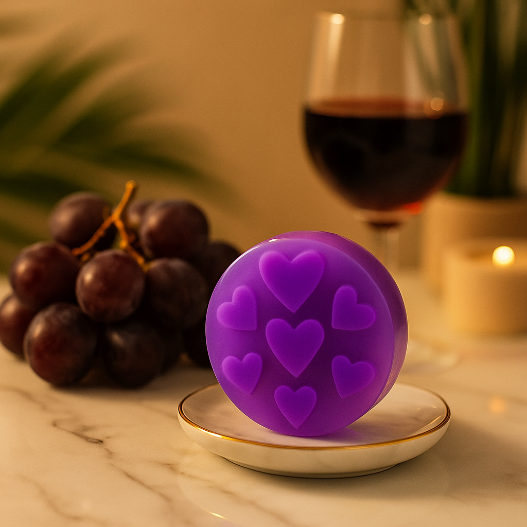 Sabonete Artesanal de Uva com Mini Corações – Limpeza Suave e Aroma Frutado